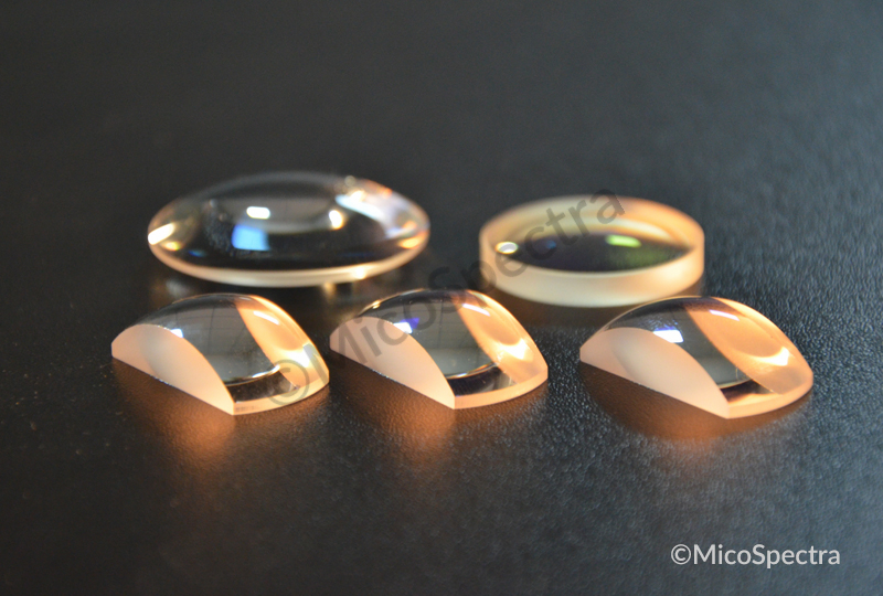 Various optical materials and shapes with flat, convex, and concave